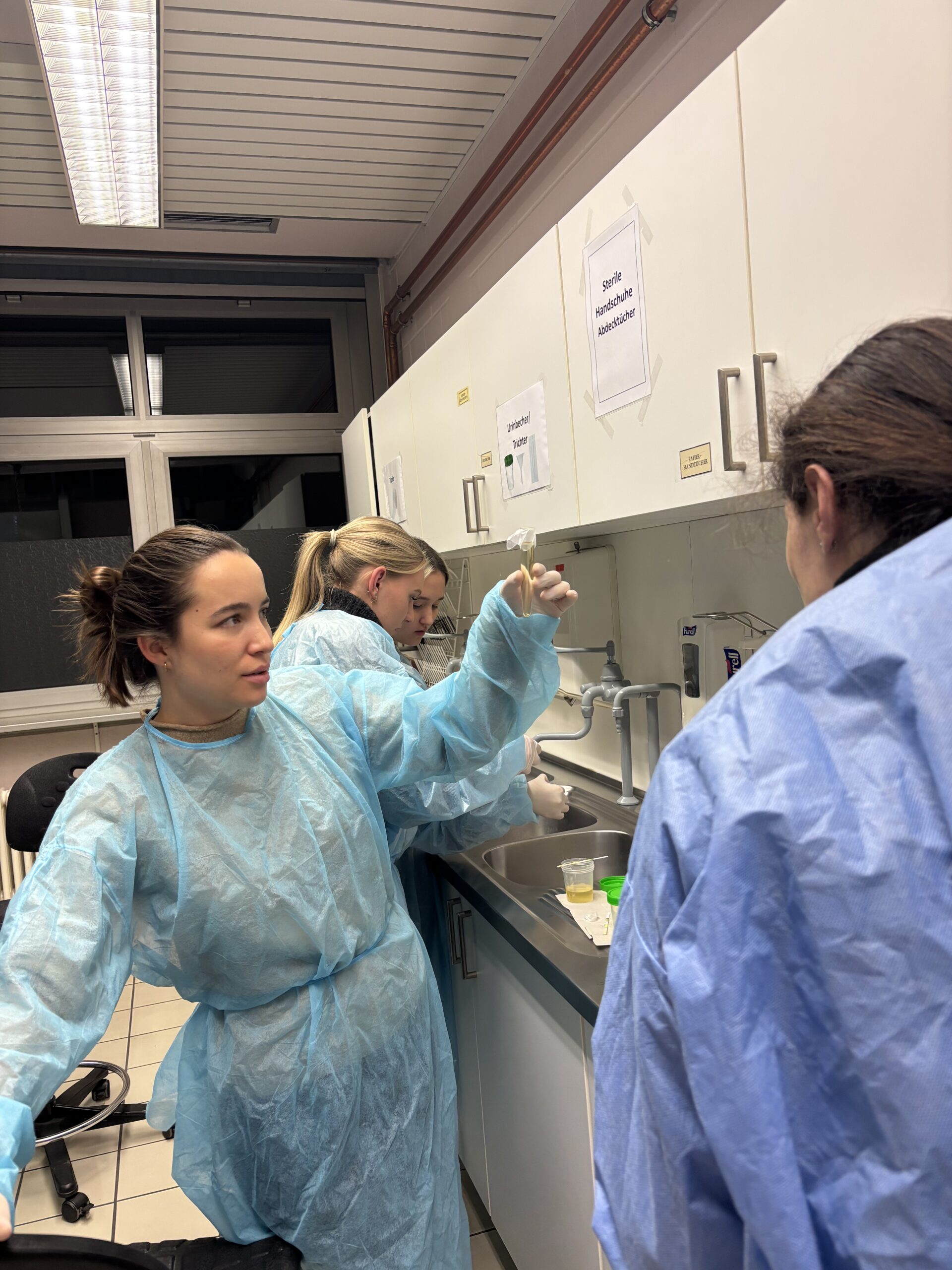 Ein besonderes Highlight war die Arbeit mit digitalen Mikroskopen: Echte Urinproben konnten live auf dem Bildschirm untersucht werden, was den Unterricht nicht nur praxisnah, sondern auch spannend machte. So wurde Theorie direkt in erlebte Praxis verwandelt.